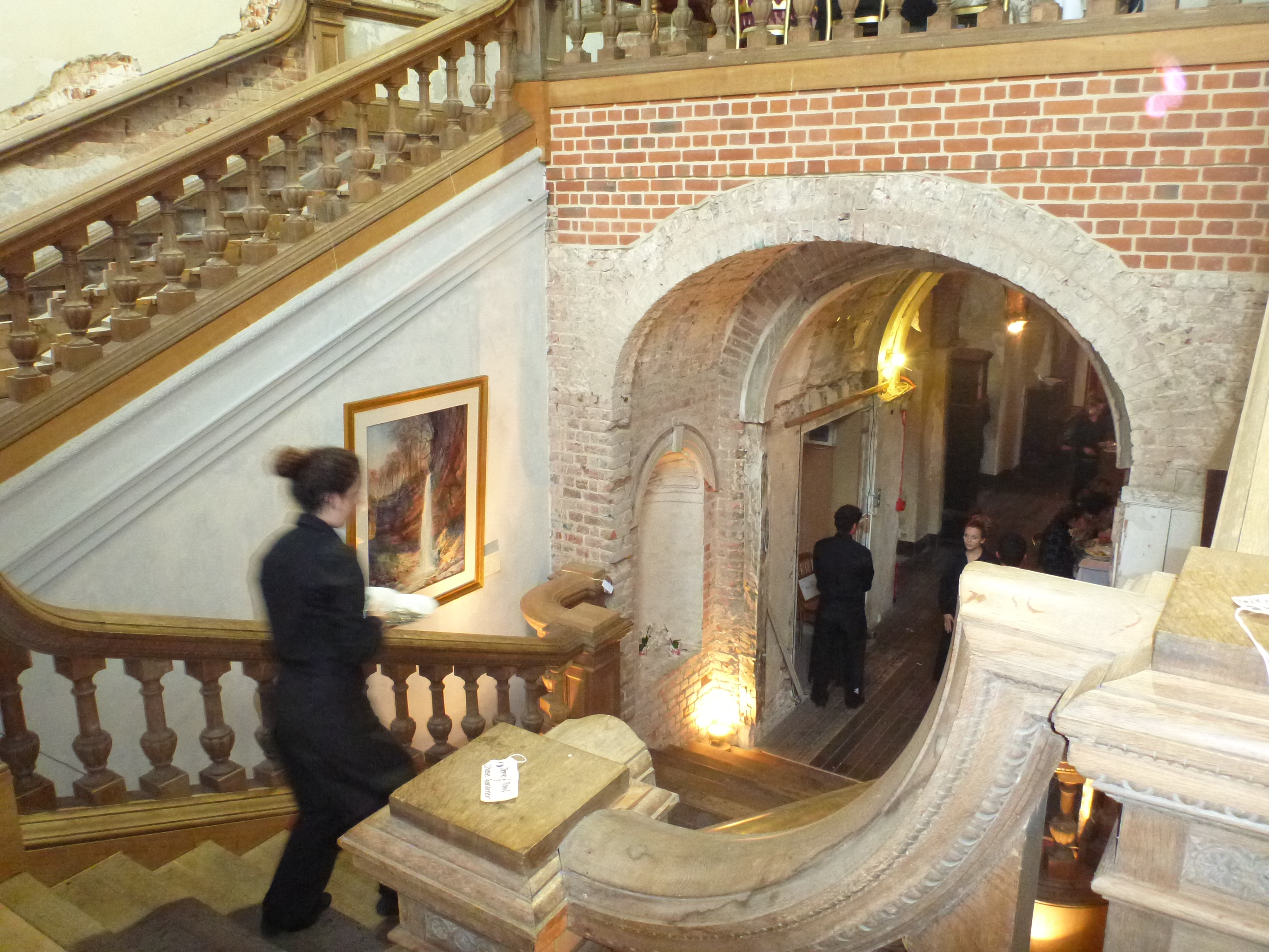 Our table was on a small landing half way up the main starcase on one side of which the treads were completely missing.