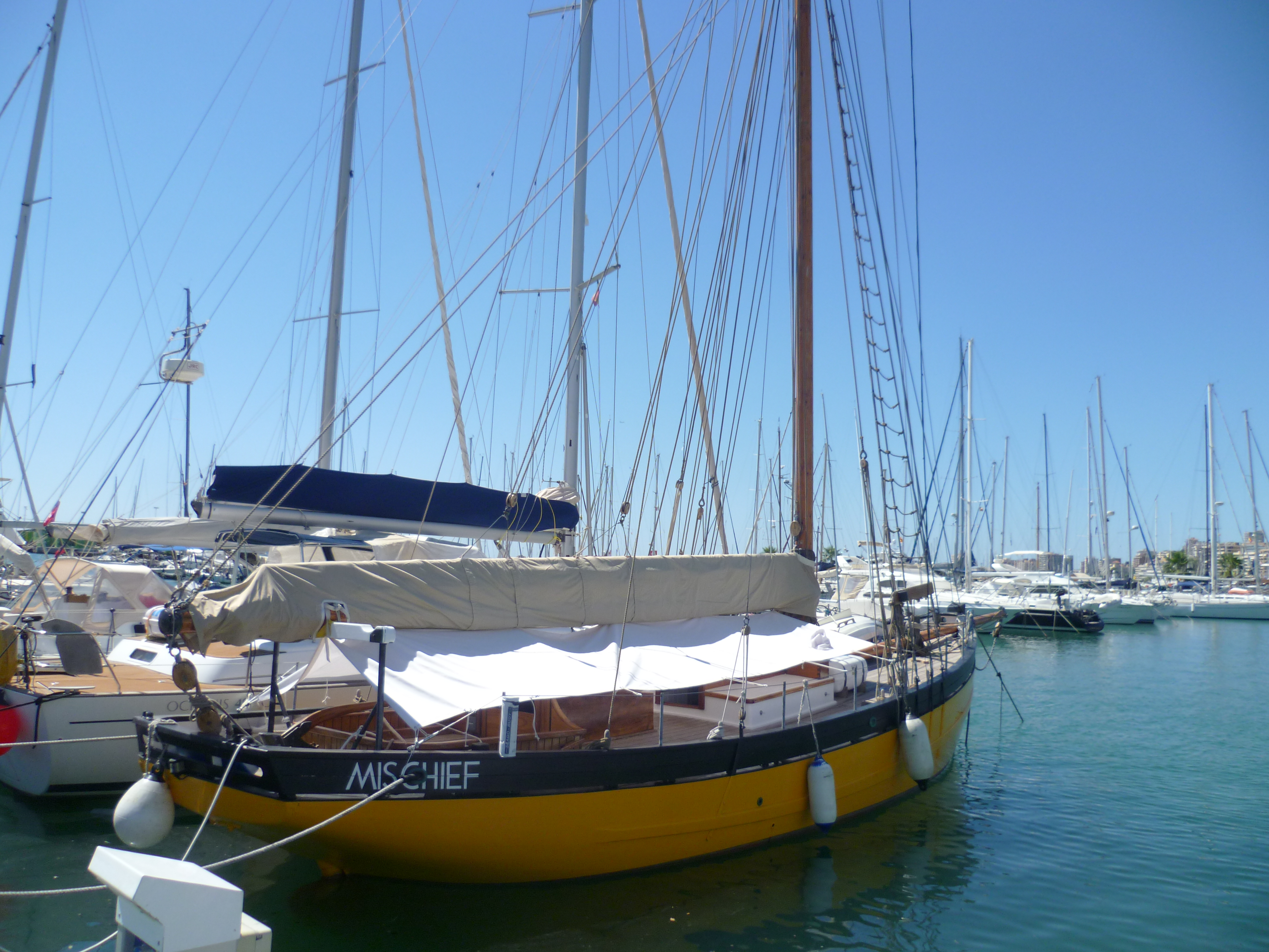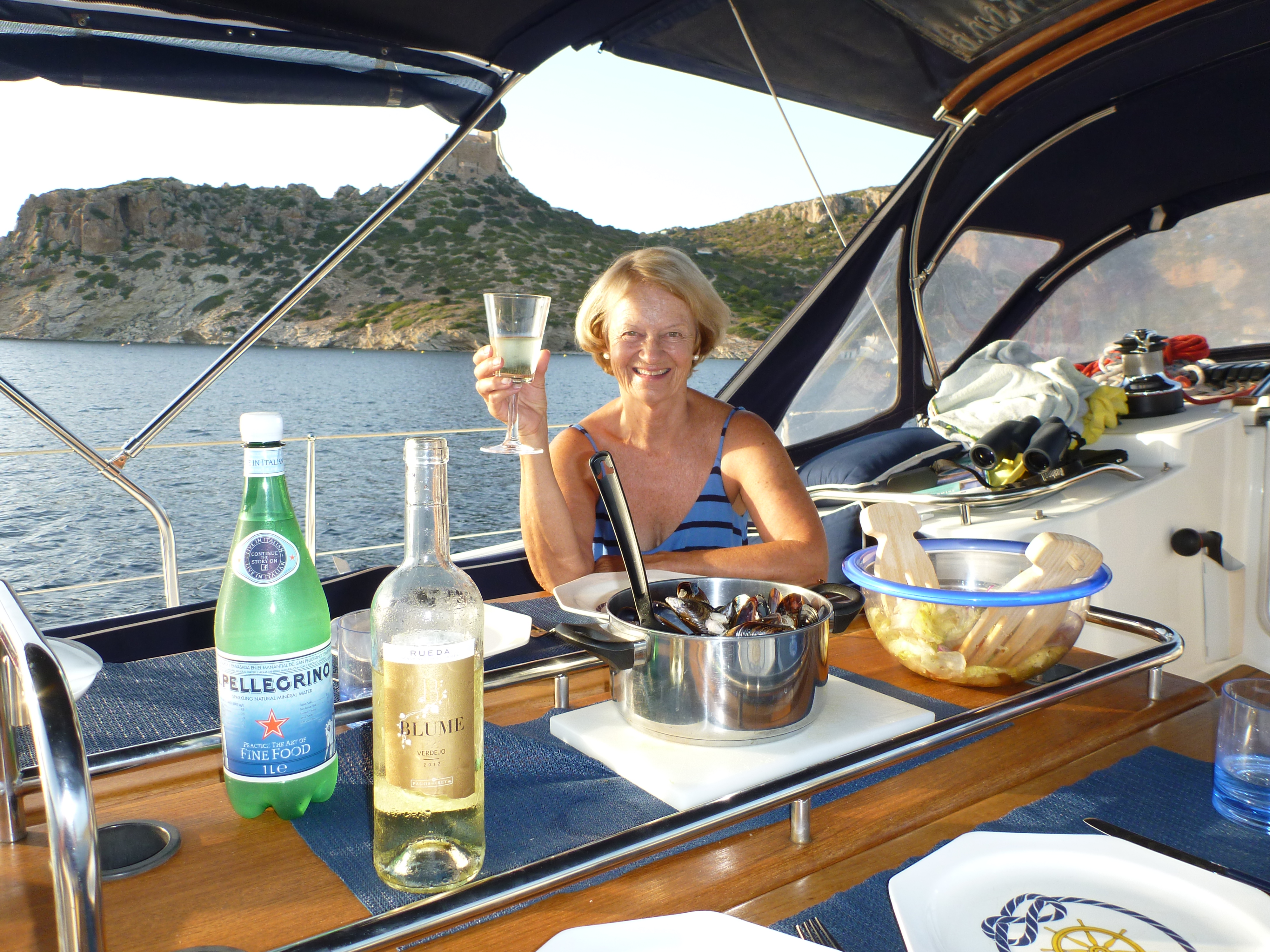 Terry spent most of the night in the cockpit watching an old wooden boat which was rolling uncomfortably close to us. We now know why people spend hundreds of Euros to tie up in the local marina.