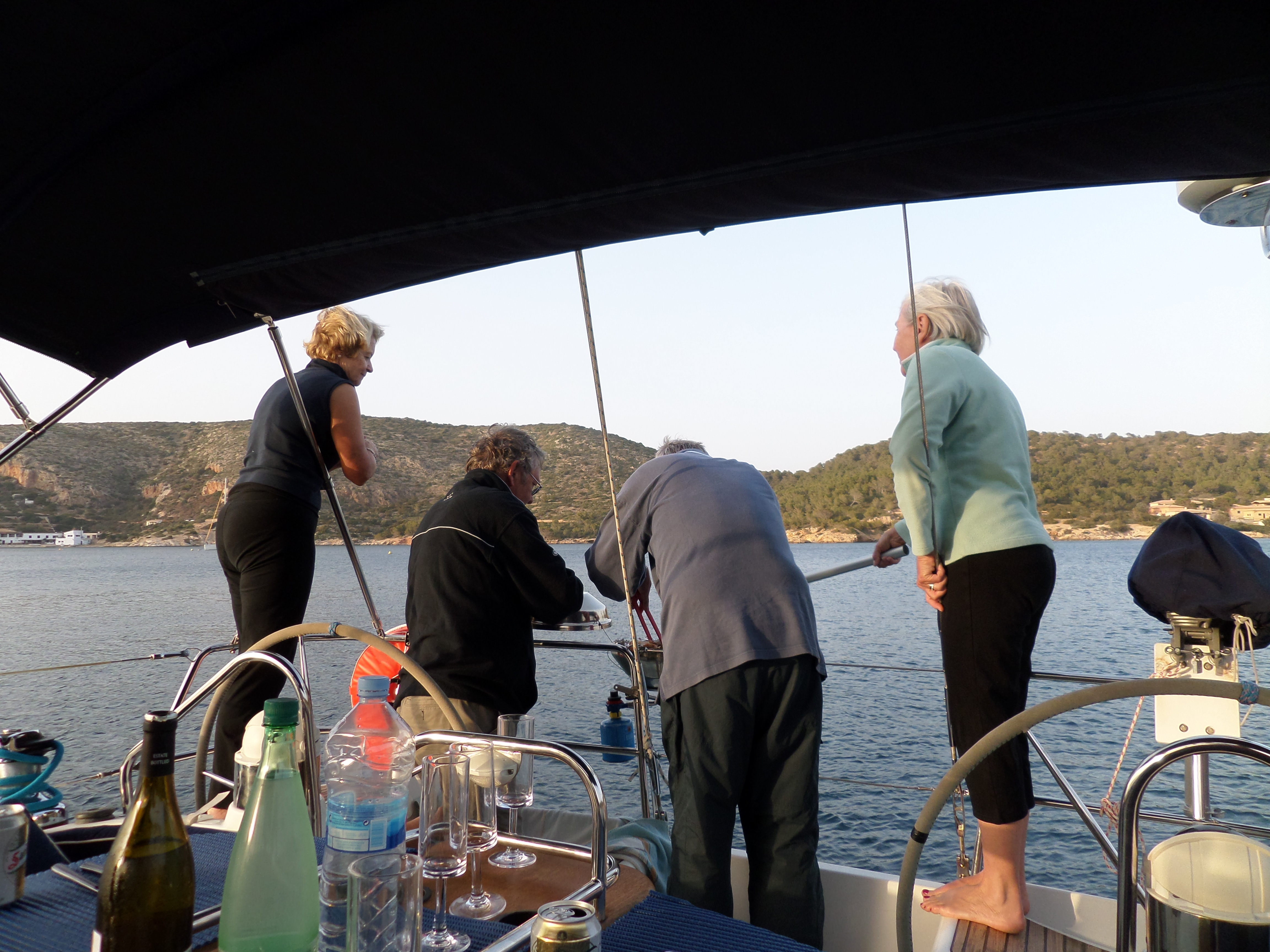 From Cabrera we had a brisk 15nm sail to La Rapita in the south east of mainland of Mallorca in a norwesterly which reached 22 knots at times with a 2-3 metre swell. With just the headsail we raced across the open water at 8 knots. It was exhilarating sailing. From there to Port Andratx, a 35nm close reach from the east to west south coast. Back to Palma on Saturday with a lunch stop at our favourite Santa Ponsa.