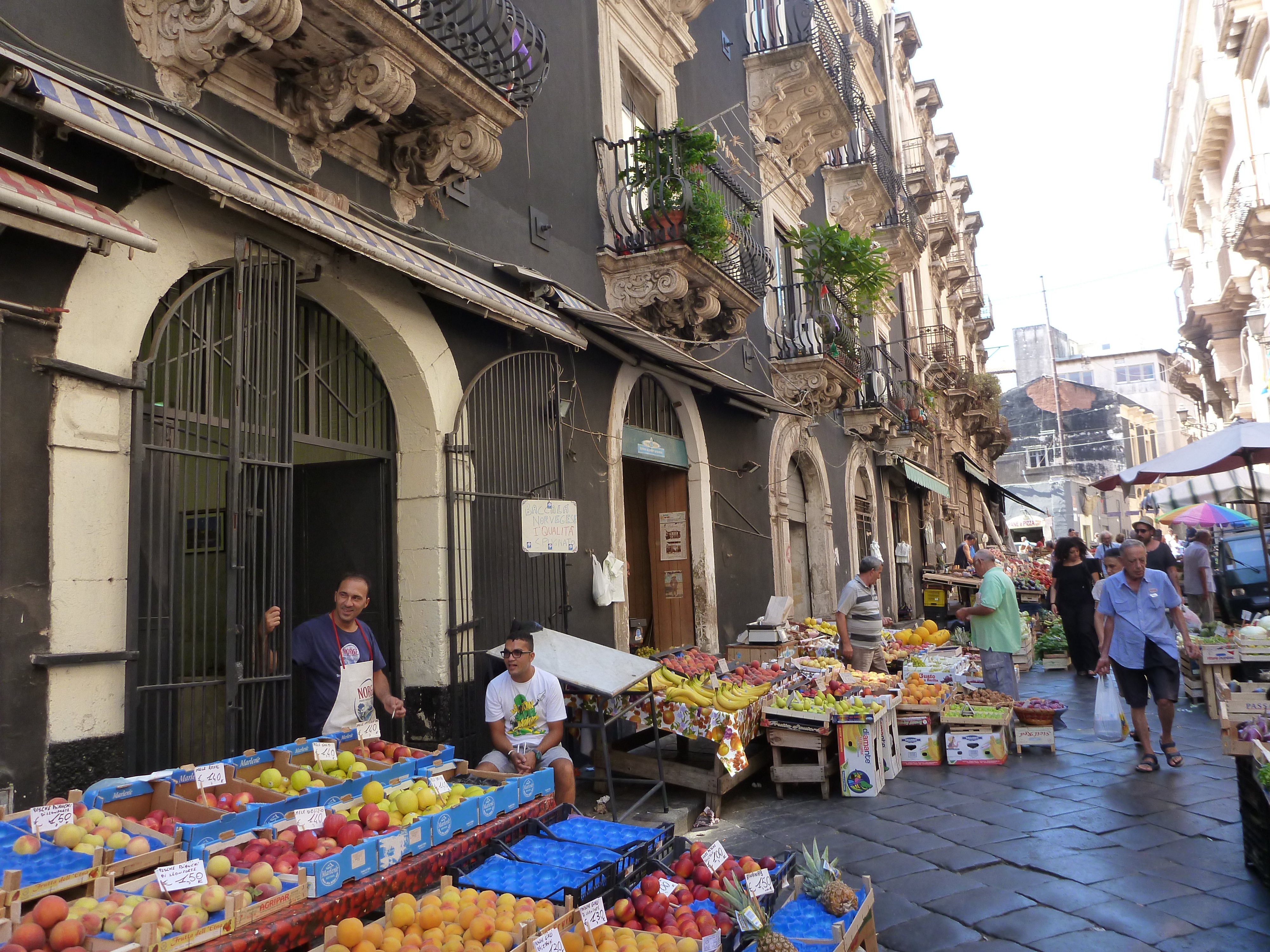 After a jolly dinner party on board Deborah Humble left us at 5am the next morning. Later in the day we explored Catania. It is pretty grimy and uninteresting around the port but the centre has quite some charm if somewhat faded and the open air markets are a feast for the eye although very wet under foot in the fish section.