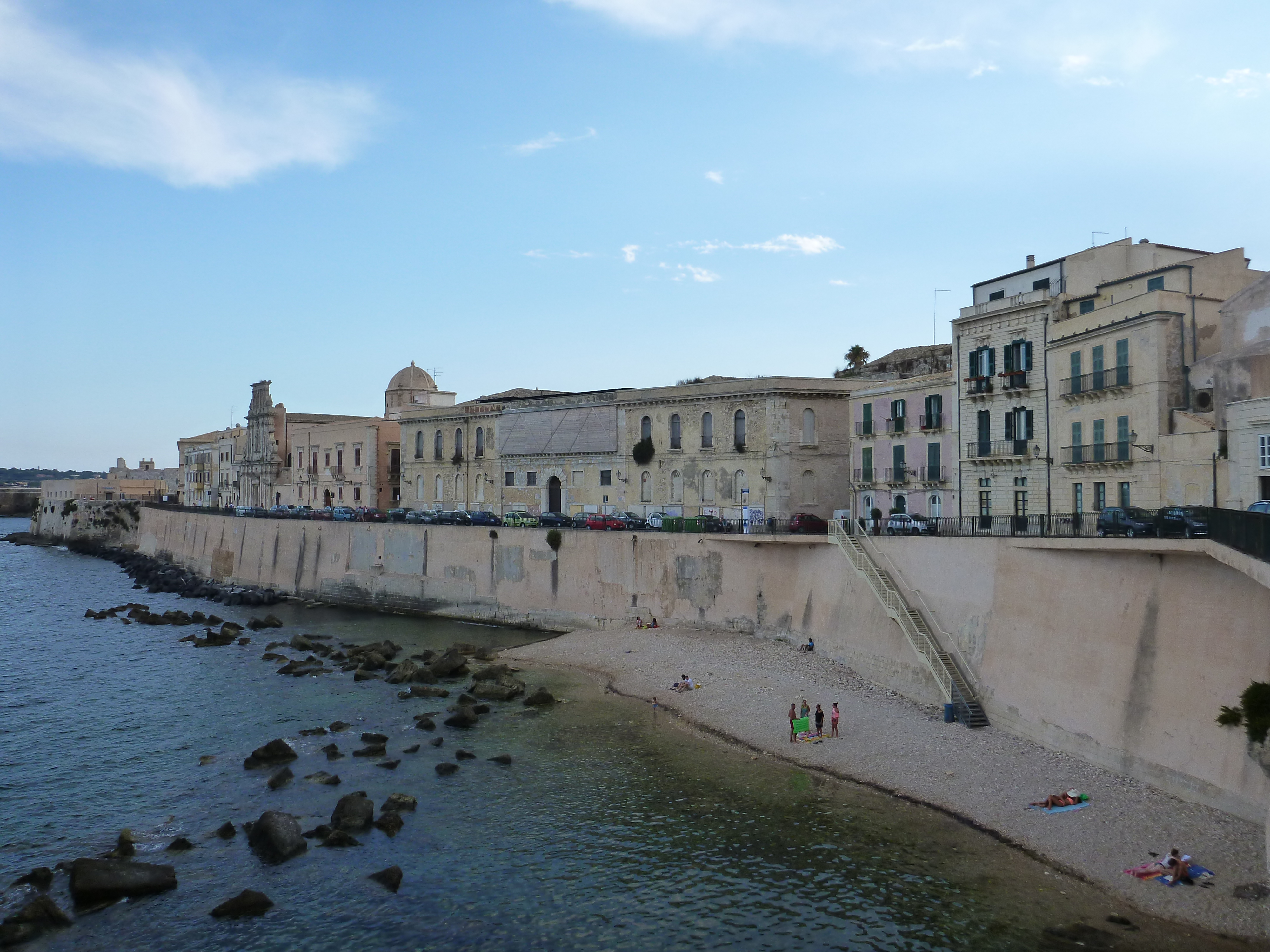 This is Syracuse, a city of much power in classical times. We took a walk around the island of Ortiga, which together with the harbour, was the reason why the city was to rule the Southern Mediterranean for so long. Now, as so often in Italy, it is faded glory with a seafront of impressive buildings which appear deserted and even the occupied ones have plaster falling off the walls. The centre of the town, however, is much smarter, full of designer and art shops for tourists.