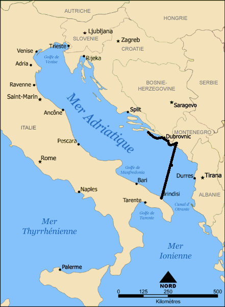 While waiting in the marina in Brindisi we were joined by Anna and Tim Cropley who only had one night on board before we set off across the Adriatic from Italy to Montenegro. This was a trip of 112 nautical miles and we set off at 6.30 pm on a dull and windy evening, although the forecast was quite good.  There was a fanfare of horns from adjacent yachts as we motored out of the marina, I think they thought we were a bit foolhardy embarking at that time and they would soon see us returning.  In fact, after three hours of beating to windward a little off course the wind dropped off and we motored very comfortably through the night.  (At least three of us were comfortable, Anna felt the motion rather severely.)