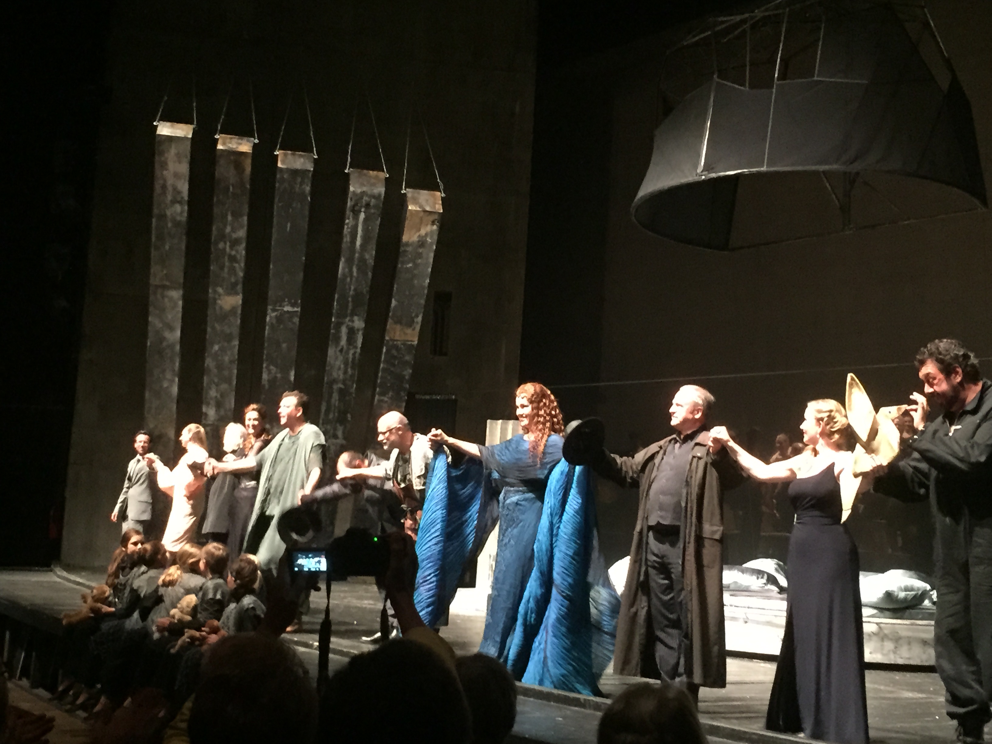 Curtain call after Walkure. Note harps on stage, harpists were dressed in flowing red gowns, the fire.