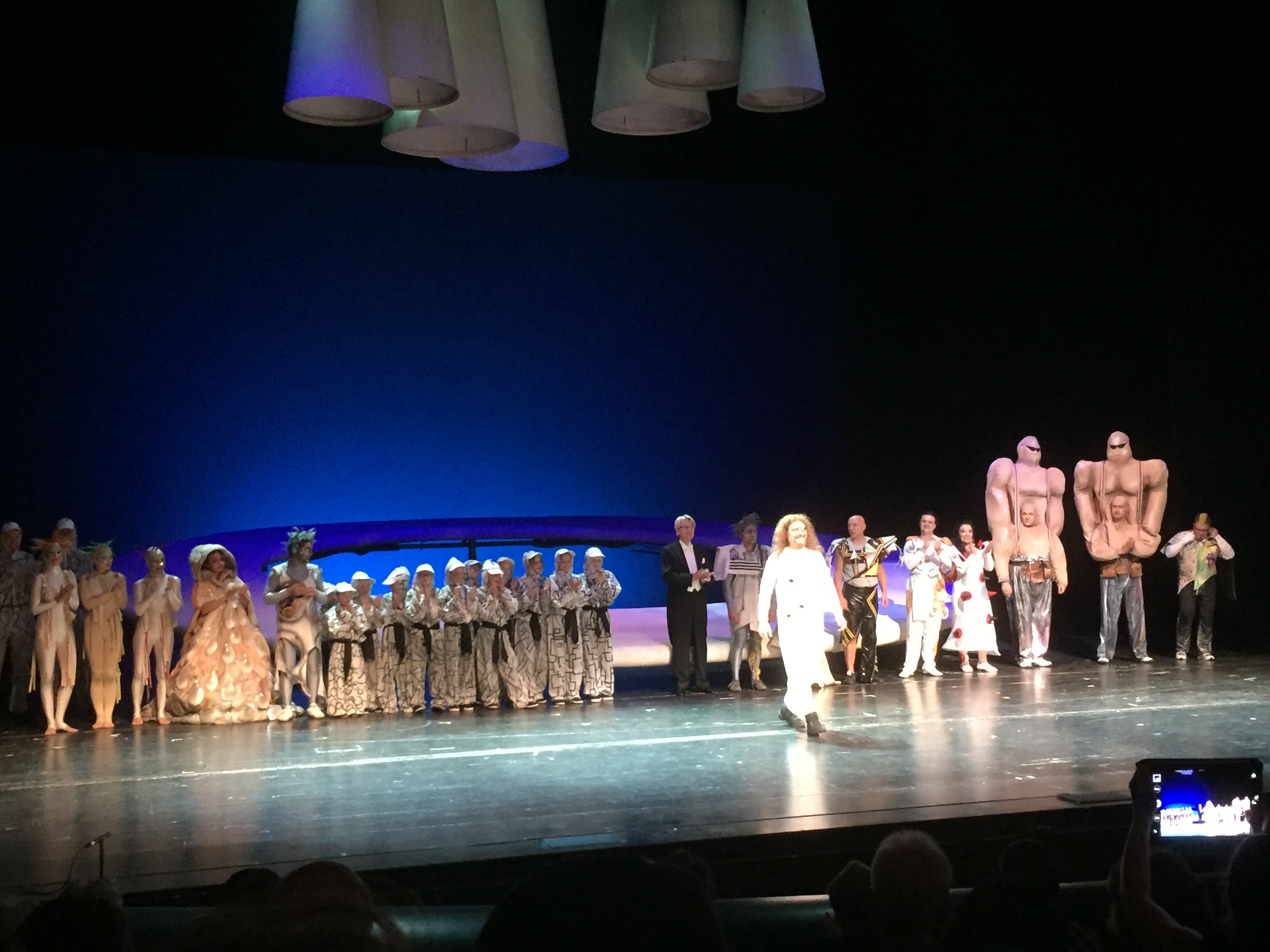 The orchestra, also all Bulgarian, were only 88 strong, packed into the small Fussen pit which is covered, á la Bayreuth, with a wooden shell. This meant that the overall sound was not of Wagnerian proportions but they did not swamp the singers and the brass were particularly solid and accurate. They were led by Erich Wächter, the only German in the production and the most modest and self-effacing conductor we have ever seen, and also the most relaxed. Most conductors, at the end of Götterdämmerung, look as if they have run a marathon whereas Maestro Wächter looked as if he had just had a walk in the park.