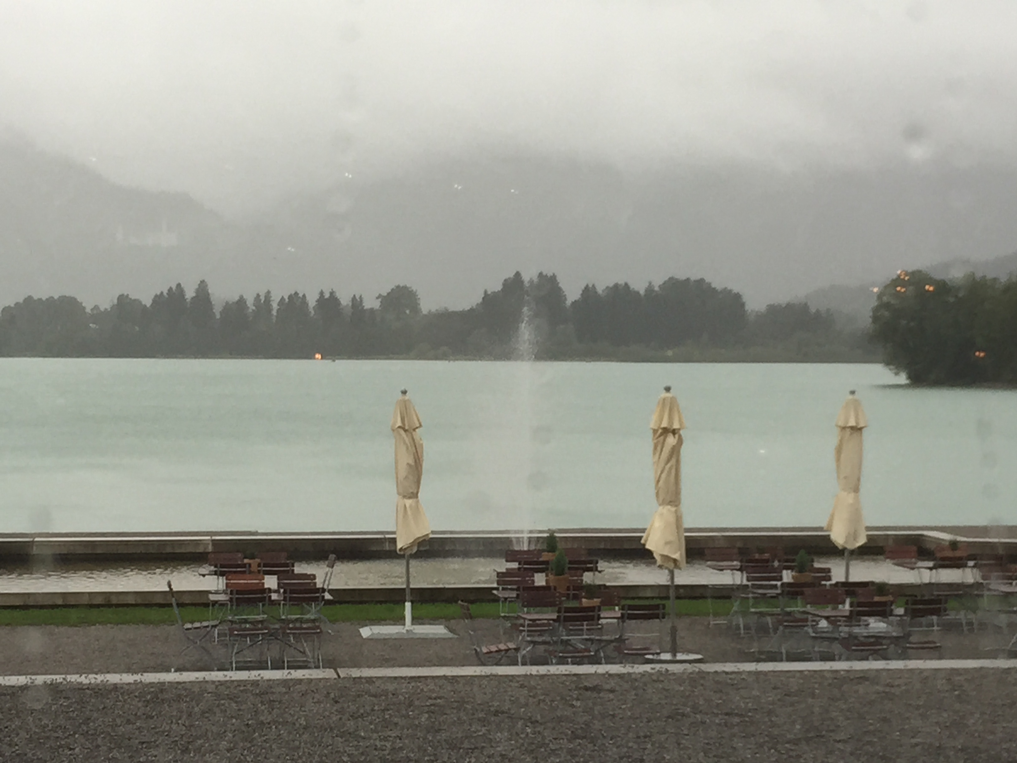 During the first interval of Götterdämmerung, after some heavy rain, we saw a rainbow emanating from the Alps directly above of the castle. Füssen’s own rainbow bridge.