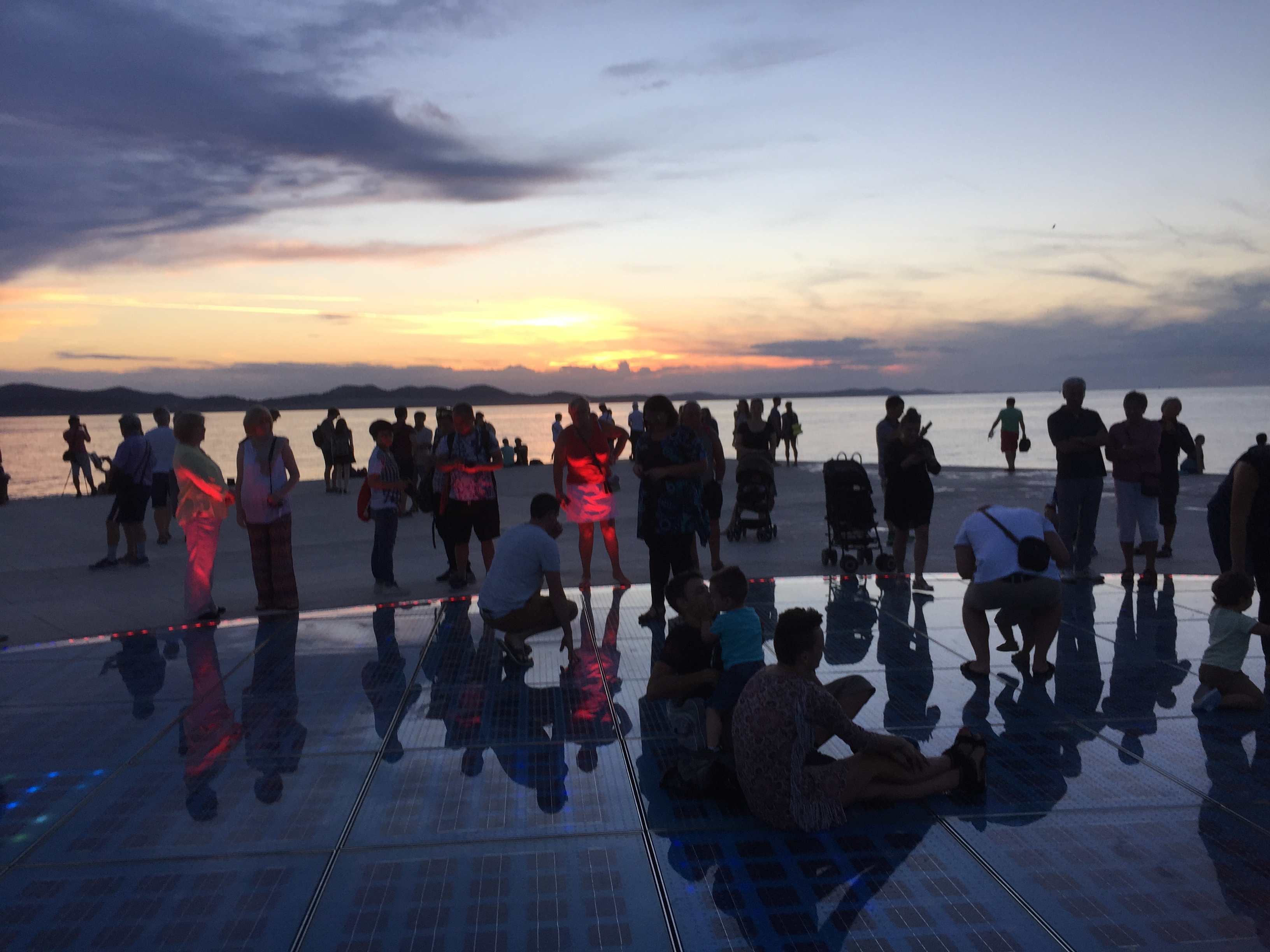 Close to the sea organ is a huge circular disc consisting of multiple solar panels which power up during the day and after dark provide an interesting light show as well as all the waterfront illumination.