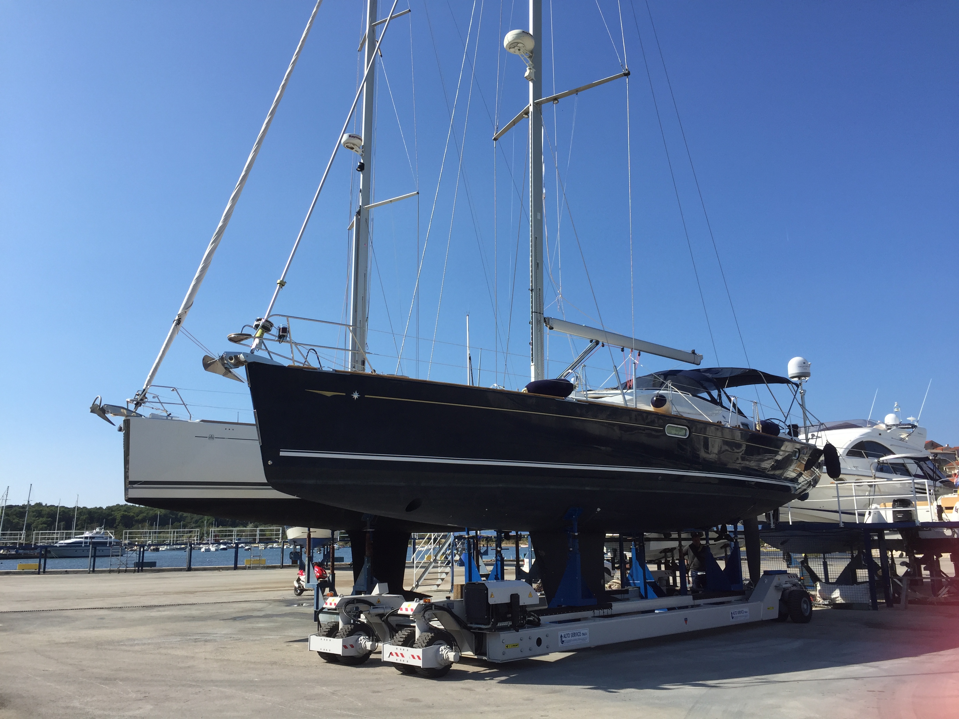 After 4 days cleaning , packing and stowing Exotica is now on the hard stand in Marina Veruda for the winter. Sitting beside a Dufour 45, Howzat, owned by another RSYS member.