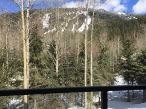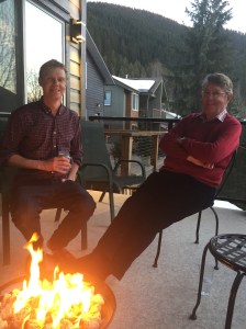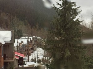 Our son, Edward, and fiancé, Charmaine, had just moved into their duplex in the tiny ski resort Sun Peaks. Complete with babbling brook at the bottom of the garden which was thick with snow slowly melting in the cold but sunny days of our wonderful eight day stay, some of the time spent, in overalls, painting their basement.