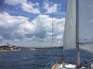 It was champagne sailing right across the Adriatic with the wind, N to NE 12-18, on the beam and Exotica flying along at a steady 8.5 knots. We have never had an entire passage without using the motor.
