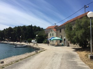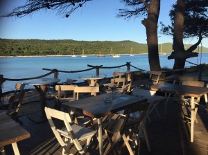 The next day we set off for a short trip round the top of the island to find the delightful bay of Sakuran where there were plenty of moorings.  The water was turquoise and warm enough to swim.  We took the dinghy ashore to dine at restaurant which the Adriatic Pilot said had the best mussels in Croatia.  However, when we got there we found a ramshackle café, the mussels  were off and all that was available was pizza. Surprisingly, the pizza was rather good.