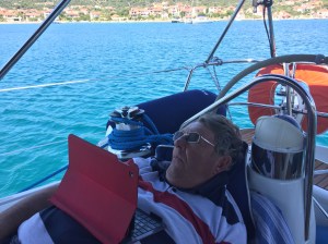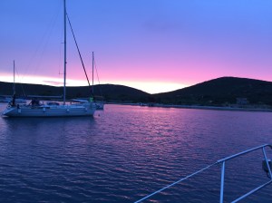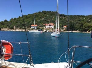From there we had another great sail to the south end of Pasman Island.  This year has been notable for more good sails than any previously.  We found a splendid inlet at Uvala Landin, where we have been before.  This time no-one came round to charge us so we spent an extra day in this delightful spot. The stiff nor’wester brought the temperature down and the sea temperature even more. Julie was not at all impressed when she found she’d swum in 17.9C
