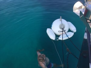 The crystal water of U Kakan after a bracing two and a half hour beat. The swim also bracing at 20C