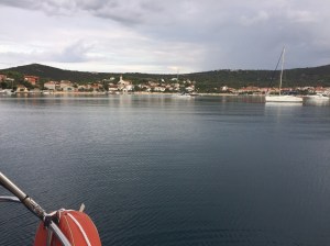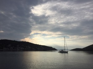 As we motored towards the entrance of Trogir bay we noticed very dense back clouds to the west moving quite fast towards us, so our planned sail south to the island of Hvar was changed to the ever secure anchorage of Vinisce. Here we weathered yet another storm comfortably at anchor. A good decision as we heard the storm intensified and by the time it got to Korcula, near Hvar, there were winds of 70 knots with blinding rain blowing 54 foot yachts sideways.