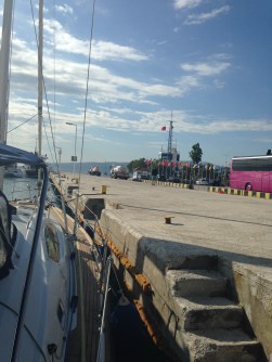 We tied up to the last spot on the floating pontoon, directed by George, who said that would be 25 euros for one night, no water or electricity. We gladly paid, only to be confronted by an earnest, young French Canadian couple who said he was illegal, they had taken a photo of him and reported him to the port police! The Germans beside us had paid him 10 euros for two nights.