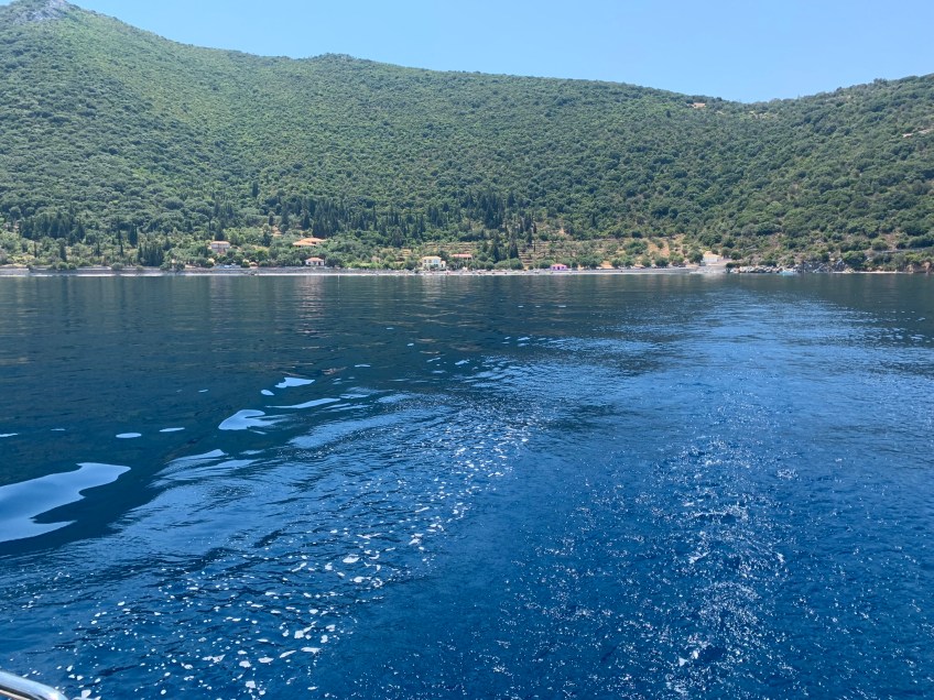 Leaving our favourite bay in Ithaca.